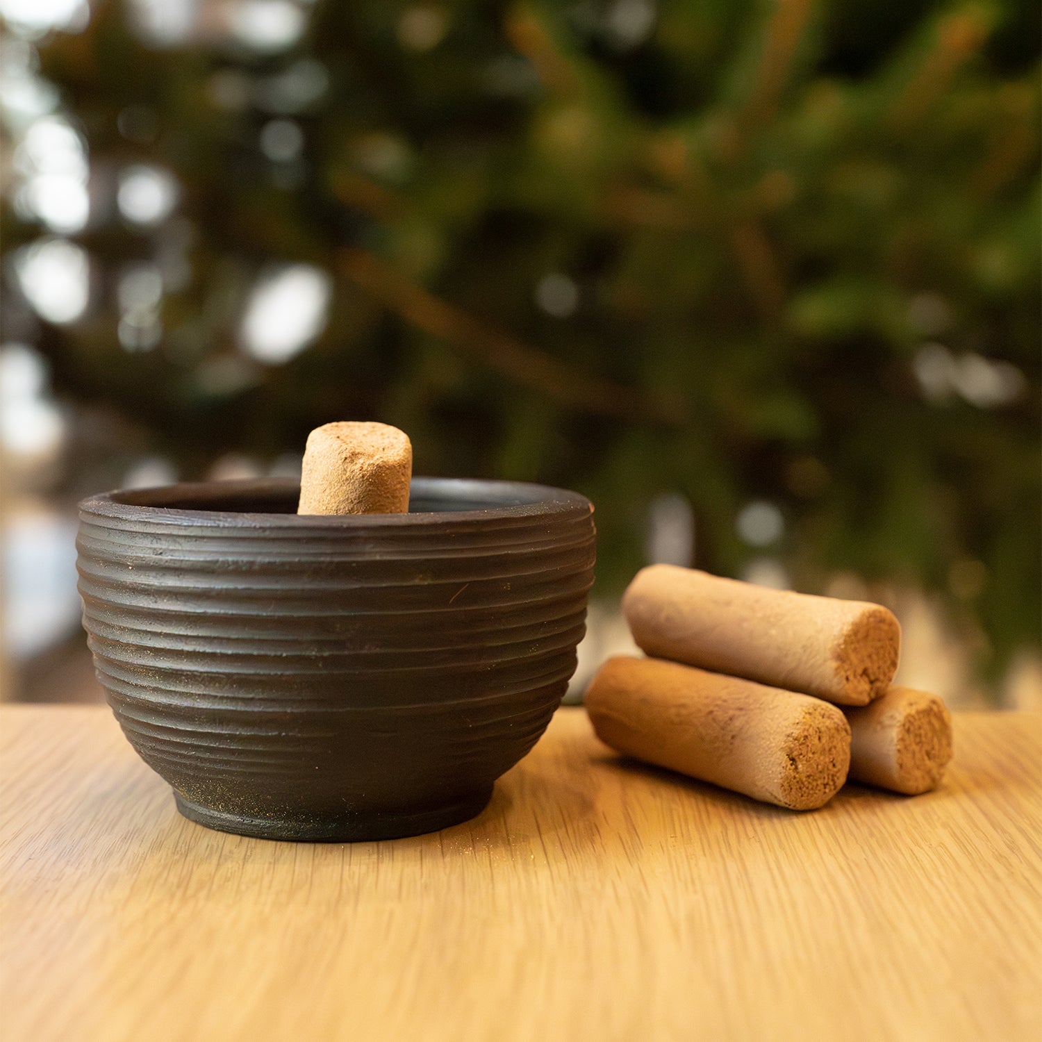 Designed in a collectible mini size, this limited-edition ritual set is perfect for holiday gifting, wellness practices, or adding a meaningful decorative accent. Each burner cup is handmade, so natural variations in shape and tone make every piece unique.